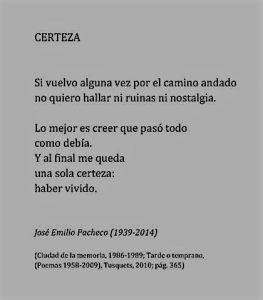 José Emilio Pacheco (June 30, 1939 – January 26, 2014), là một nhà thơ, nhà tiểu luận, tiểu thuyết gia và nhà văn viết truyện ngắn người Mexico, được coi là một trong những nhà thơ lớn của Mexico nửa sau thế kỷ 20.